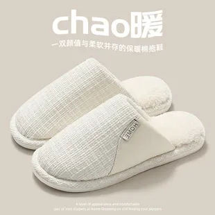 Cotton slippers for women in winter, anti slip for household use, striped for external wear, simple and comfortable, warm indoor plush cotton slippers for men wholesale in autumn