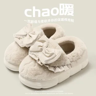 Cotton slippers for women in autumn and winter, new thick soles with a sense of stepping on feces for home decor, anti slip and cute princess style plush slippers for women