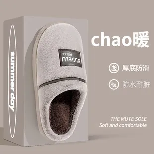 Large size cotton slippers for men with thick soles and a feeling of stepping on feces in winter, indoor couples, home warmth, non slip and plush cotton slippers for men