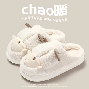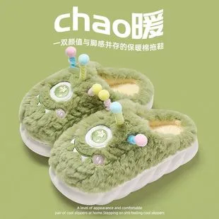 Stool feeling cotton slippers for women in autumn and winter 2023, new cute cartoon thick soles for warmth and anti slip children's cotton slippers wholesale