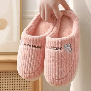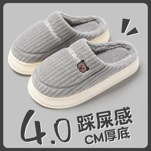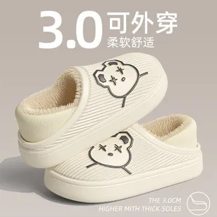 Waterproof cotton slippers for women, winter home, indoor anti slip fur slippers with plush little bear bags and thick soled cotton shoes for men wholesale